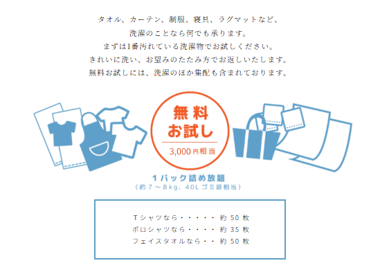 「汚れをきれいに落とす」のが当店の最大の強みです。その効果を実感いただくため、無料お試しをご利用いただけます。最も汚れが気になる洗濯物で、ぜひ一度お試しください。